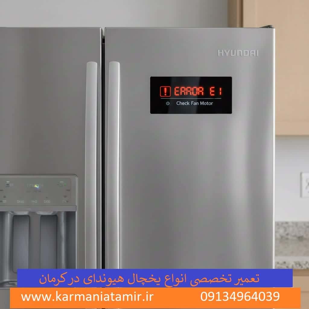 | E1 / F1 | سنسور دمای کابین یخچال (R-Sensor) | علت: خرابی سنسور در بخش یخچال. نتیجه: دستگاه نمیتواند دمای داخلی را تنظیم کند. این رایجترین کد از ارورهای انواع یخچال هیوندای است. |