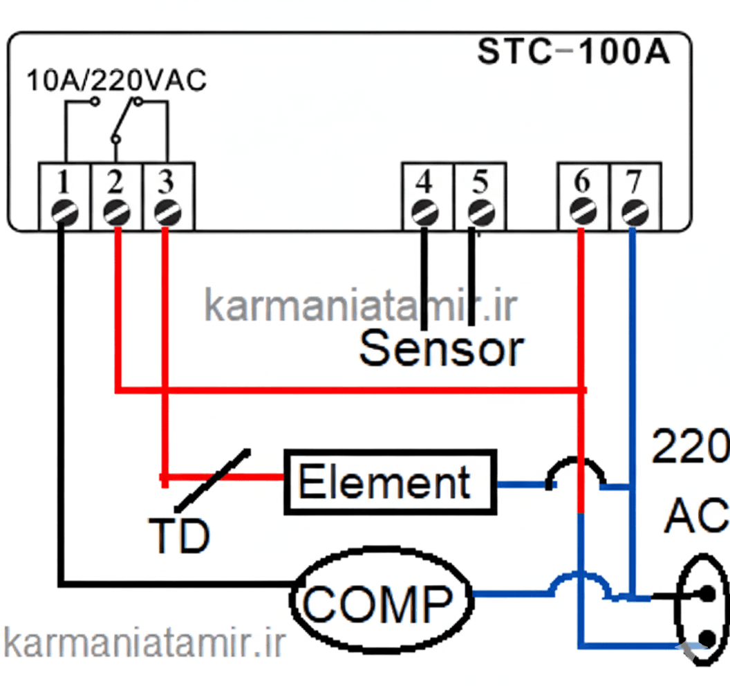 | 2 | انشعاب از ترمینال 6 | متصل به رله برای انتقال برق ازکمپرسور و فن به المنت با زمان تنظیمی |